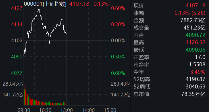 11:31 A股午盘丨沪指涨0.13%顺升网